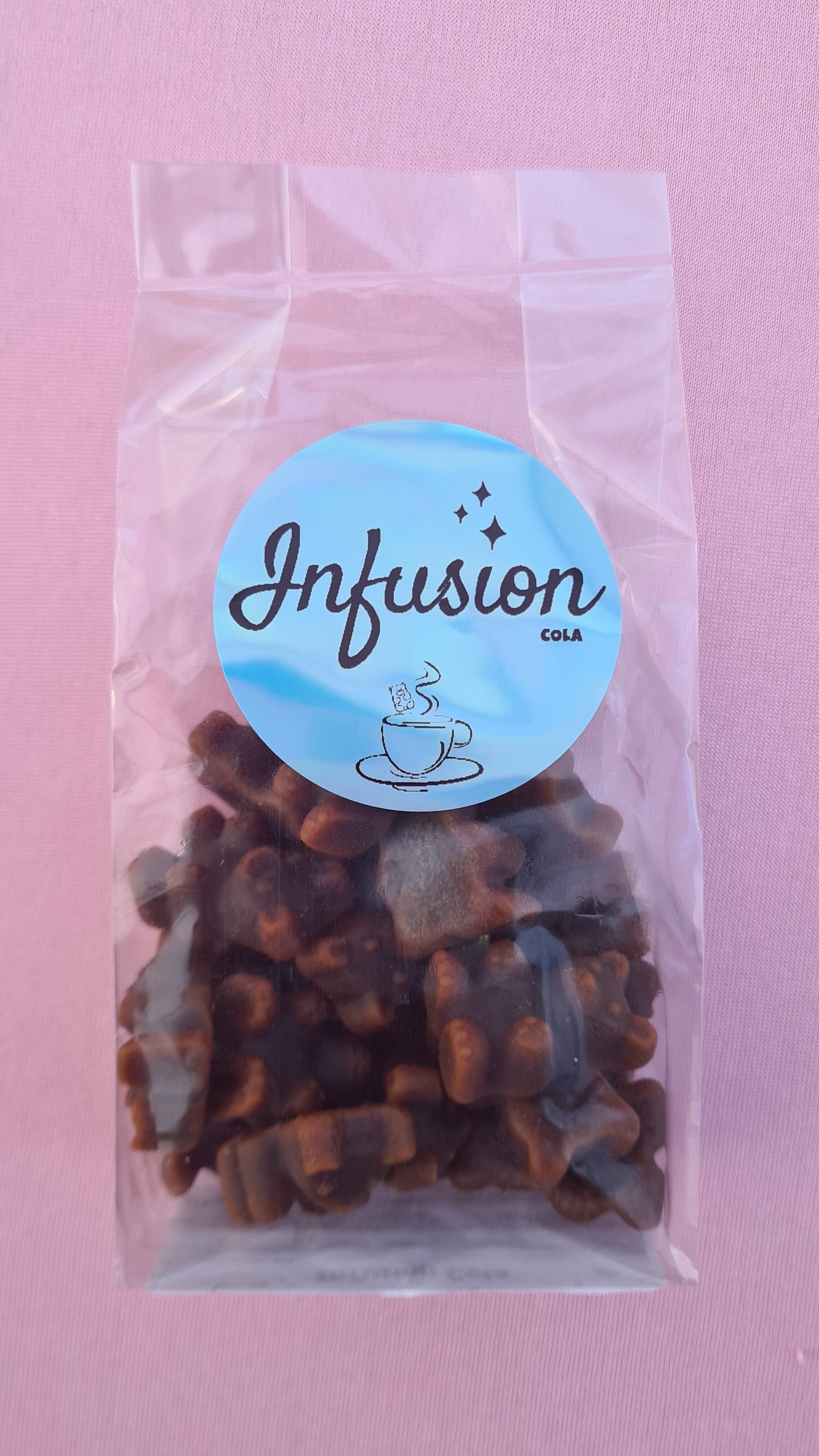 sucre, sirop de glucose, gelatine, eau, jus concentré du raisin blanc, aliment colorant (sirop de sucre caramélisé), acidifiant : acide citrique, extrait de thé blanc, arôme naturel d'agrumes, édulcorant à base de jus de pomme concentré, jus de pomme concentré, jus concentré de poire, jus concentré d'abricot, agent d'enrobage : cire de carnauba.